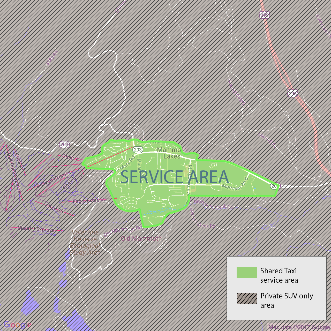 For areas not serviced by Shared Taxis please use Private SUV Taxi service.